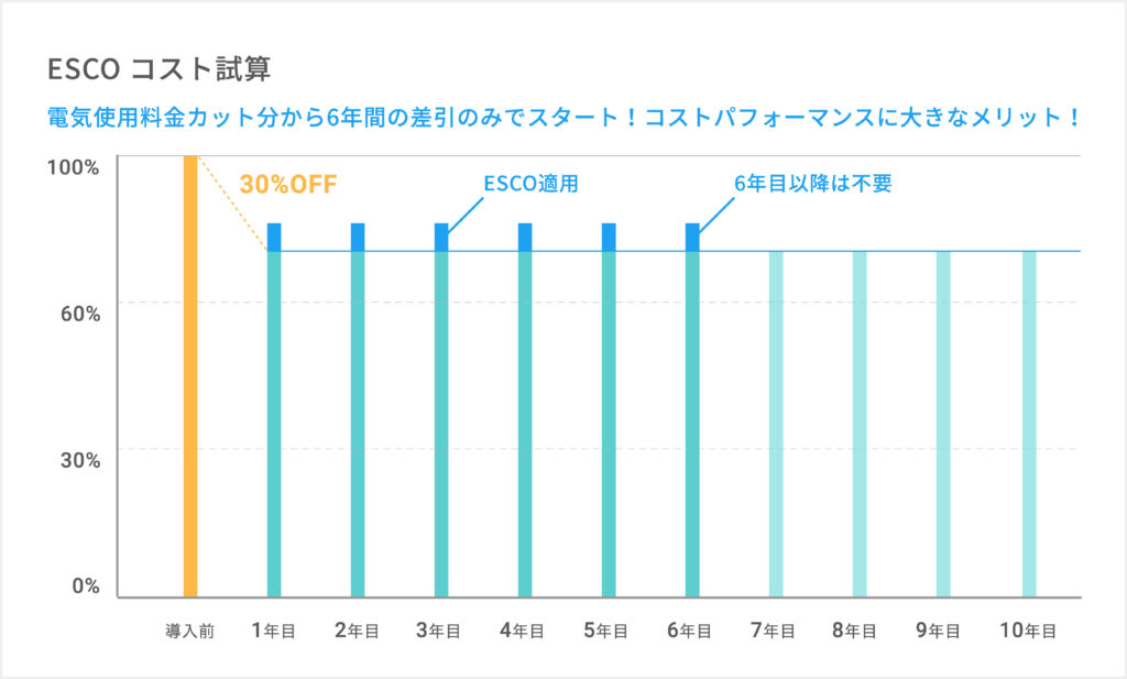 導入からメンテナンスまでのすべてをESCOが全額負担。企業側の資金負担は一切ありません。